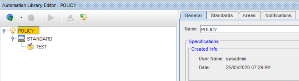 Example: POLICY, STANDARD and TEST are created under "System" of Automation Library (Screenshot for reference)