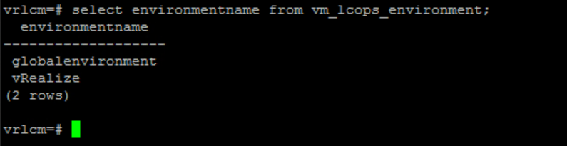 4. Can see from the database that the old entries for environments does not exist in UI.