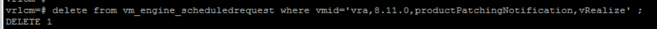 delete from vm_engine_scheduledrequest where vmid='vra,8.11.0,productPatchingNotification,vRealize';