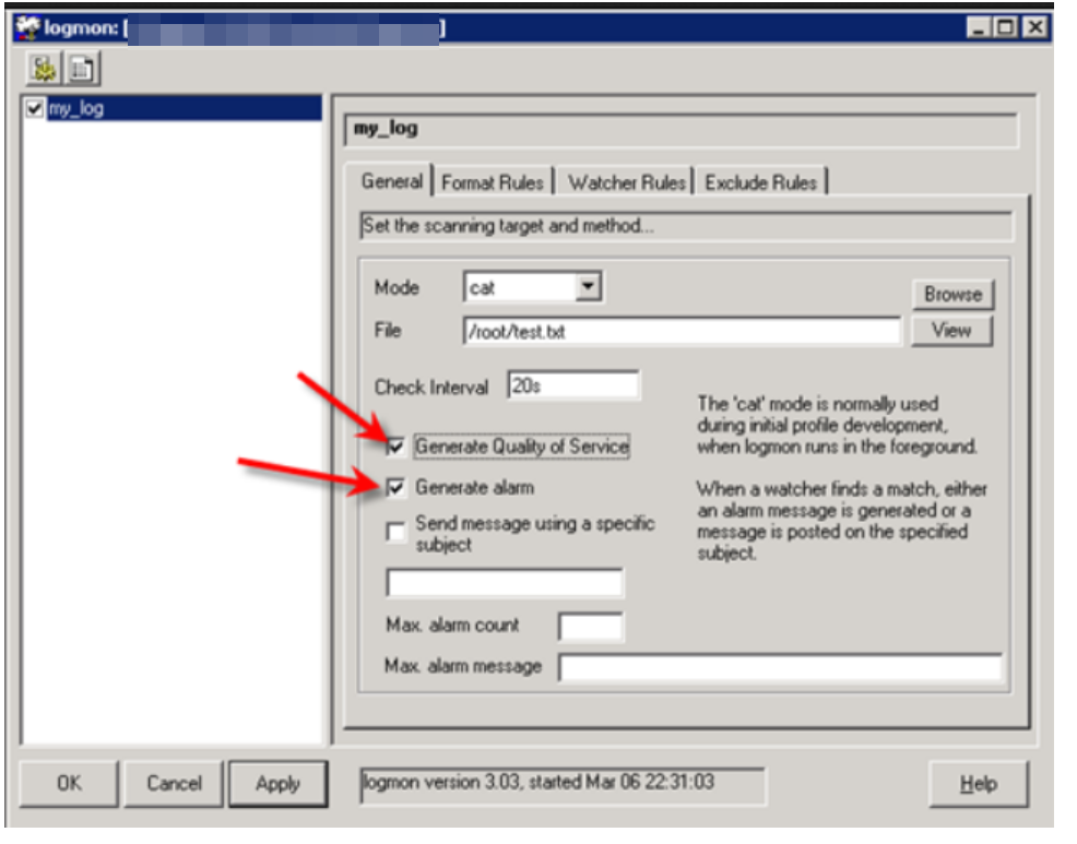 o1. Create a new logmon profile. On General tab you need to select the Mode, File, Interval and the function of the profile.