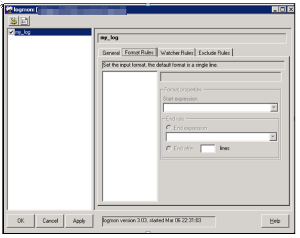 2. Select a format for this profile from the Format Rules tab. A format need only to be defined if a single log entry consists of more than one line.