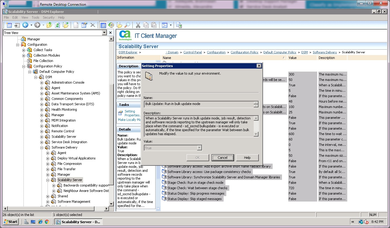 A database update is made for each item like status messages and inventory records when "Bulk Update Mode" is set to FALSE. If it is set to TRUE, the scalability server caches all the job status messages and the inventory records and wait for scheduled time to update database in batches.