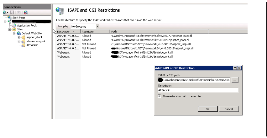 ------ Add ISAPI and CGI Restrictions for APSAdmin CGI