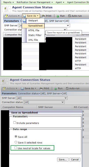 If SMP Console is opened in a non-English language and a report shows the date/time format not in the US format, then when attempting to save a report output and and not enabling the "Use neutral locale for values" option, the date/time format will be saved according to the current SMP Console language.