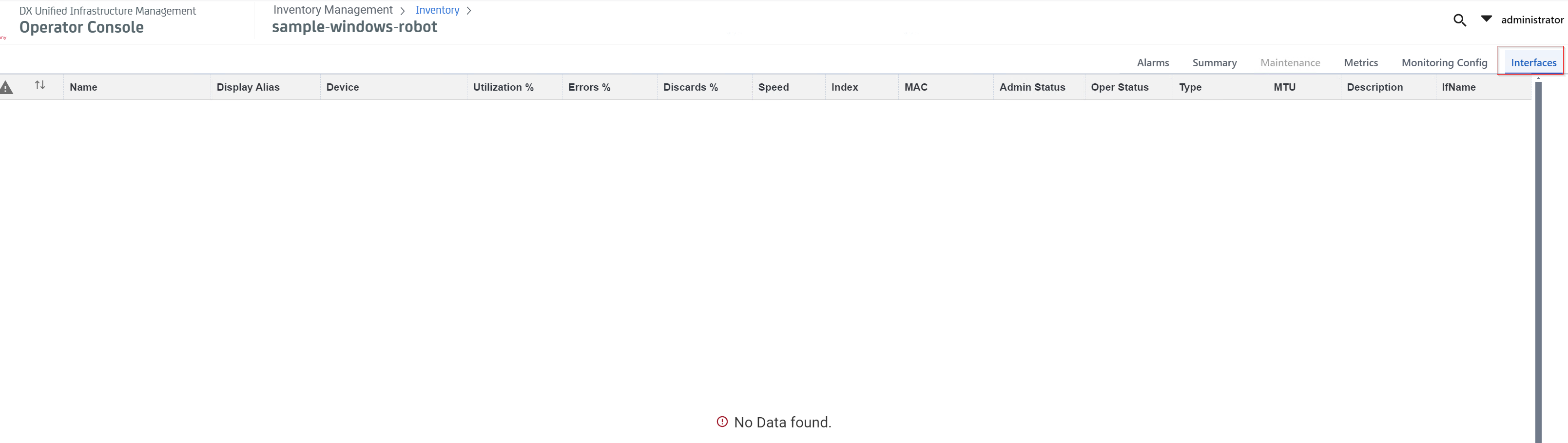In Operator Console, each device has an 'Interfaces' tab but when I click on this, I always get a page that says "No Data Found."