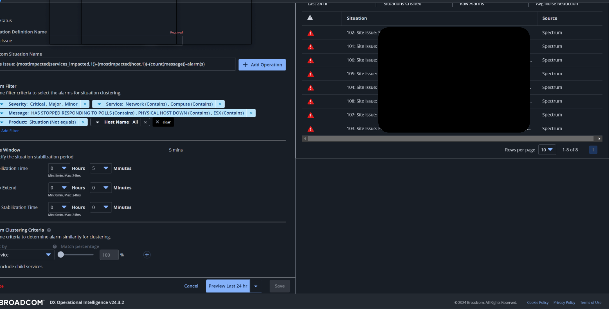 Note this situation has service boundaries so only Site Power alarm that is in the same service as the active situation can be applied