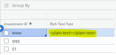 Users are observing that after they delete data from Large String Rich Text in the grid as below they are seeing unexpected results: