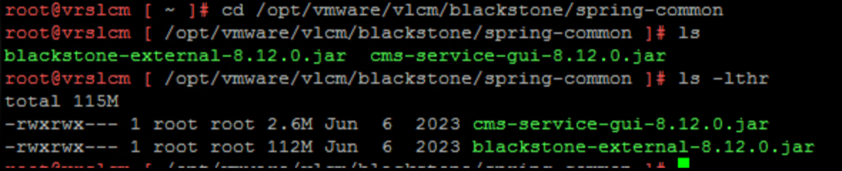 Browse to "/opt/vmware/vlcm/blackstone/spring-common" folder