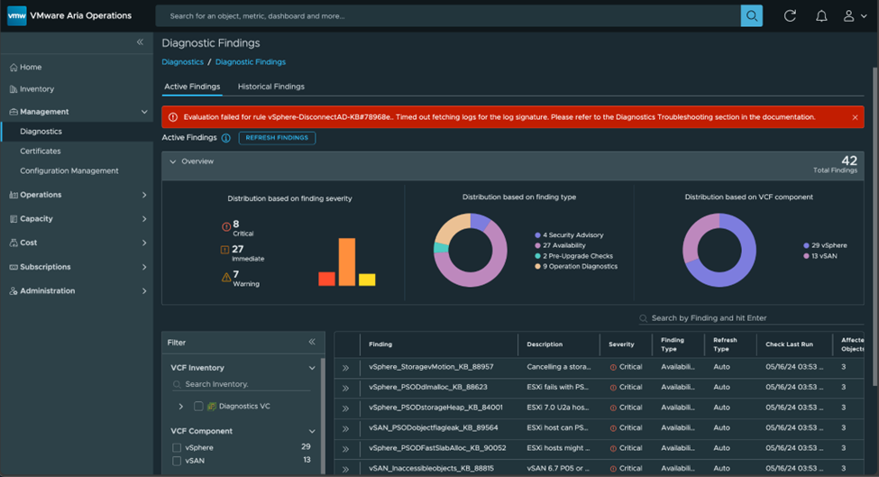 For a large inventory or incorrectly sized VMware Aria Operation for Logs instance, these queries can run for longer periods of time causing the signatures to timeout.