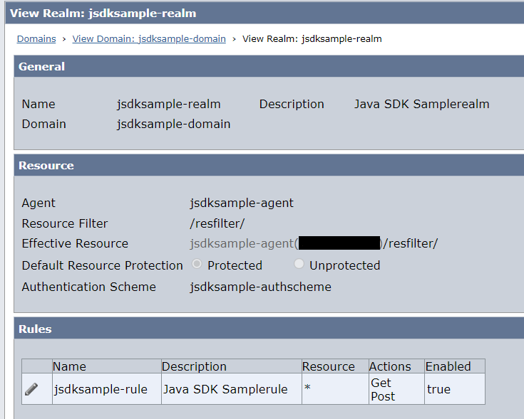 Resource Name............................: /resfilter/private.html Action...................................: GET IsProtected..............................: 1 (Resource is Protected) Realm Name...............................: jsdksample-realm Realm OID................................: 06-e78406e4-3d85-4cfd-b864-17a449b1da7b ______________________________________________________________
