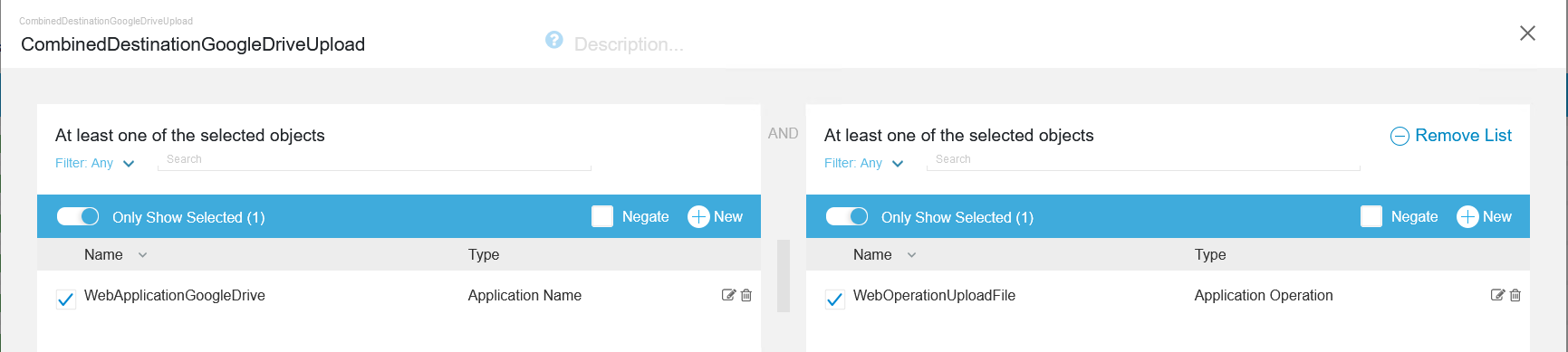 We need to create an access policy to block the upload with the 'AND' policy for the application and Upload.