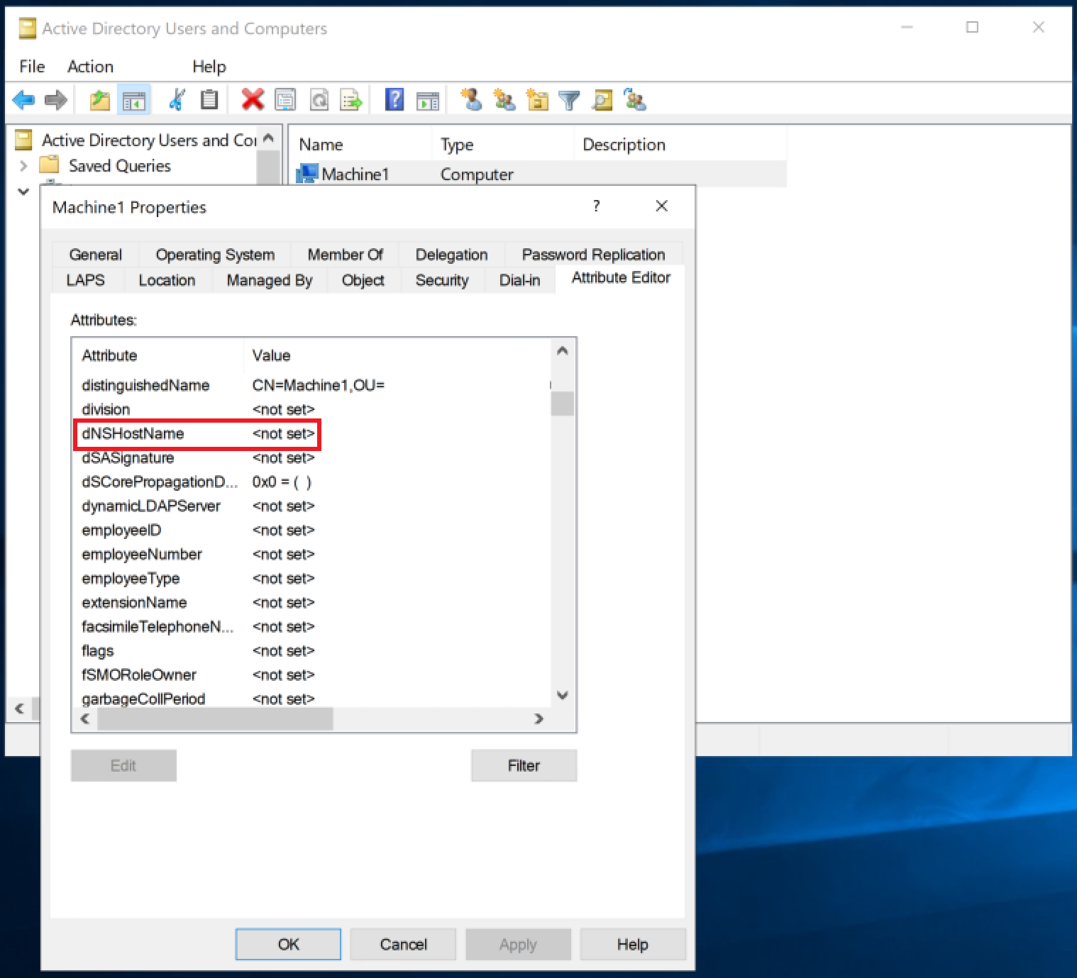 The errors will occur when the DNS host name is not set for the device in Active Directory.