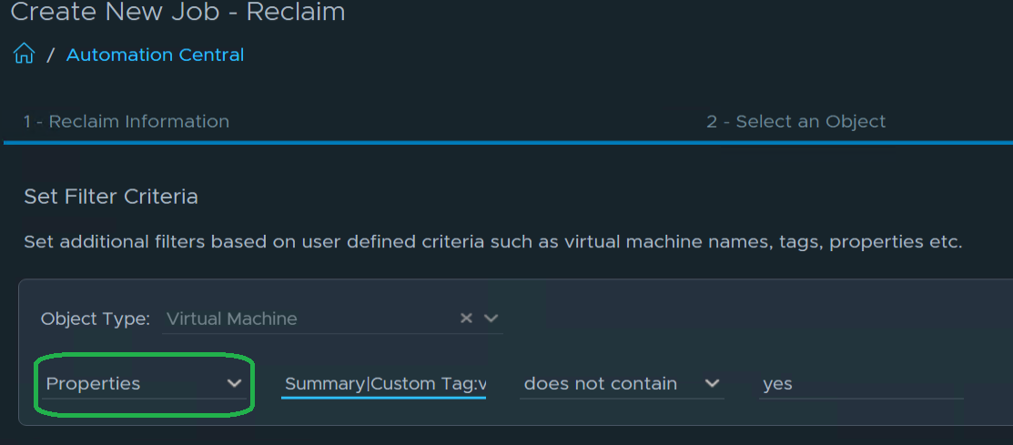 When a Job is created under Automation Central using property-based filters ( I'e Virtual Machine Custom Attributes / Custom Tag ) would get saved as metrics.