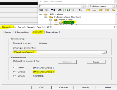6) Select the Panel object of the function created, and select Details property (Security Tab).