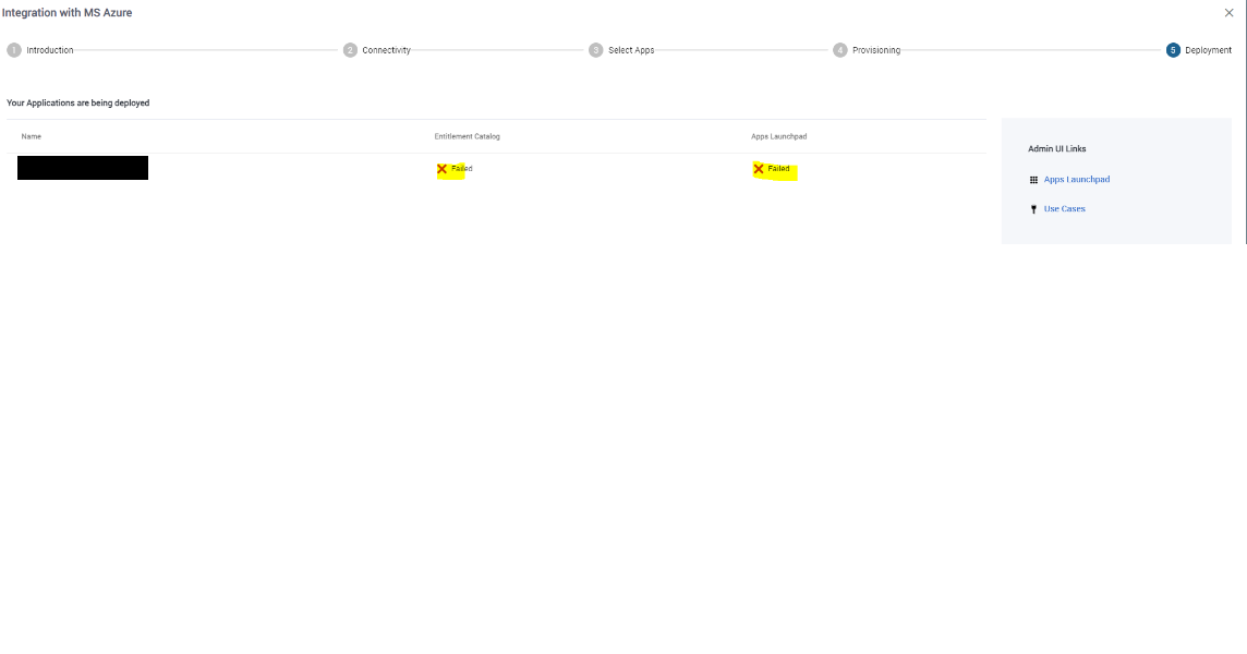 "Failed" message when trying to deploy Azure Application in Identity Portal