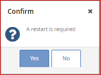 Recent releases of Management Center versions would have a pop-up Confirmation window Administrator with messaging that a restart is required.