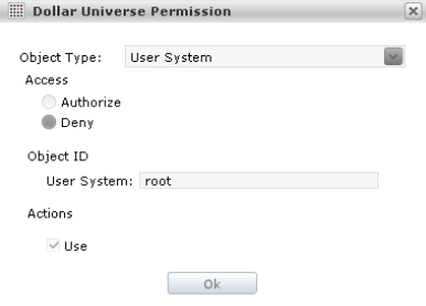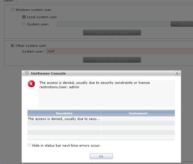 There should be the message "The access is denied, usually due to security constraints or license restrictions.User: admin" visible when trying to create a user with System User 'root':