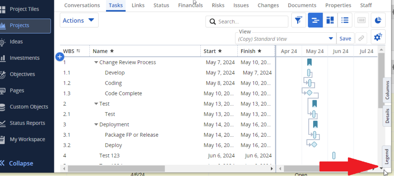 Depending on the zoom/screen resolution, either the Task Timeline view Legend fly out covers up the down arrow, or even when it is visible, you can't click on it to scroll down. The scroll up arrow works fine.