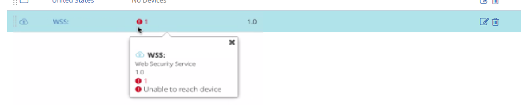 After failover from Primary Management Center to Secondary one, you notice that the Cloud SWG (previously known as WSS) is showing disconnected with error "Unable to reach device" as shown in the screenshot below