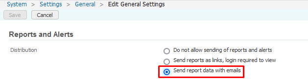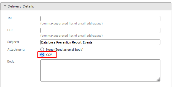 Even though "Send report data with emails" is enabled in the Enforce server general settings users are unable to see the CSV option when scheduling distribution of a report.