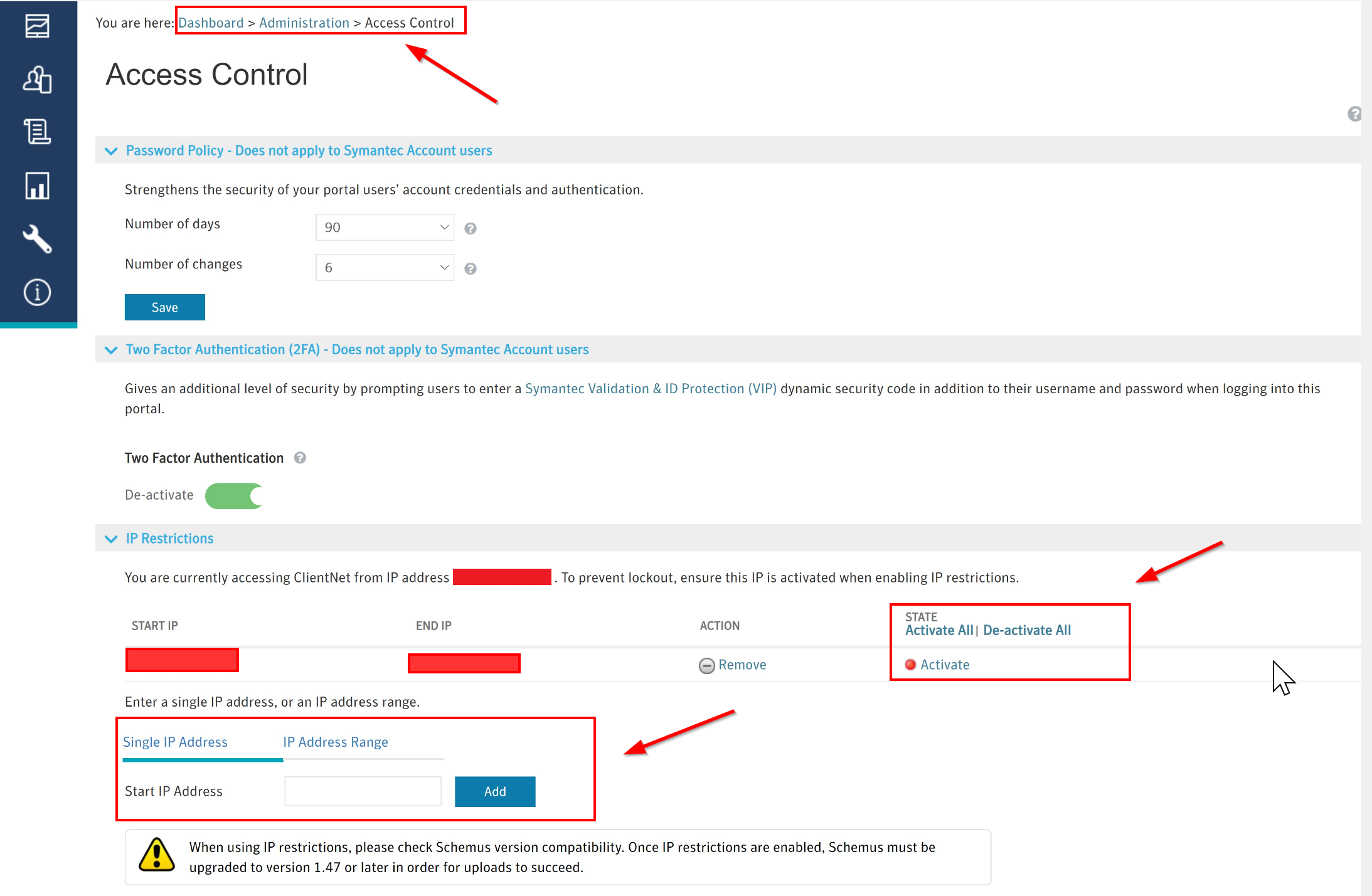 How to enable IP restrictions for portal security in Email Security.cloud
