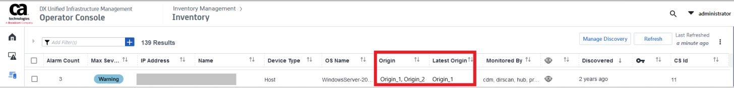 The Latest Origin was an enhancement added to display only the latest origin from the cm_computer_system table in the Inventory and Device Details pages.