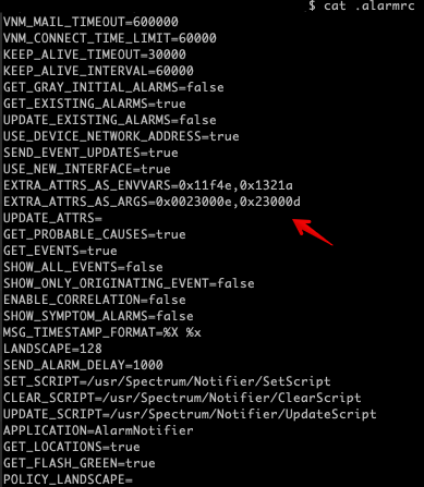 1. Update $SPECROOT/Notifier/.alarmrc file adding the attribute (0x23000d) for Location EXTRA_ATTRS_AS_ARGS