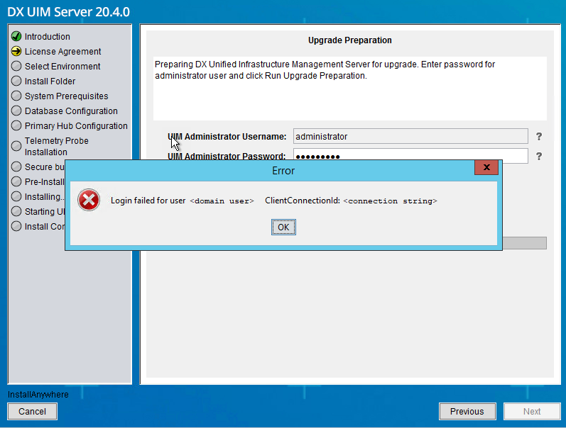 Login to the primary hub machine using the same Windows account that was used to connect to the MSSQL server per: