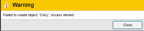 Failed to create object. 'CALL': Access denied