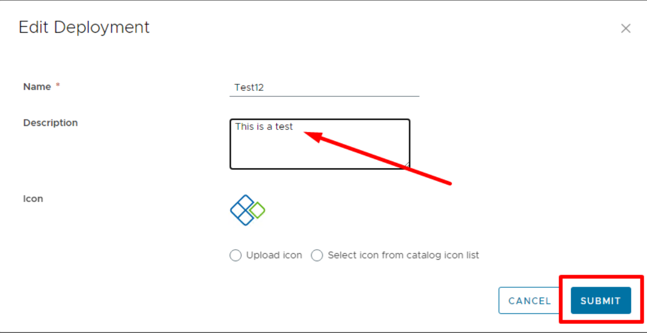 3. Update the "Description" or change the "Name" of the deployment and click "Submit."