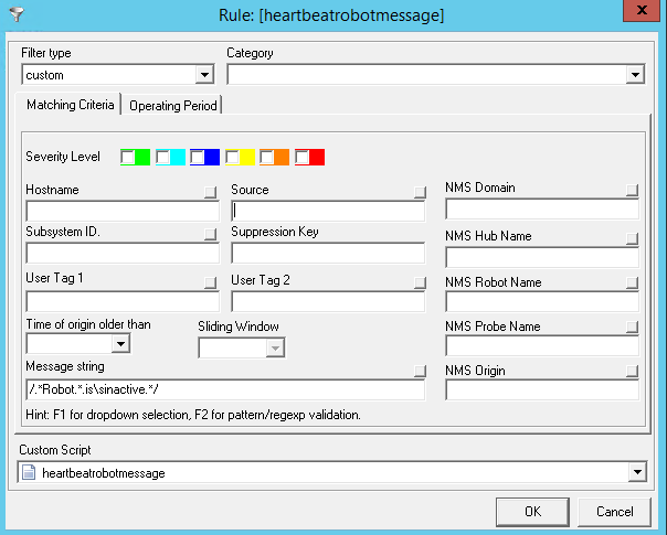 2. Click on Pre-processing rules and add the rule as shown below with /.*Robot.*.is\sinactive.*/ in the Message string and Click OK to save the change.