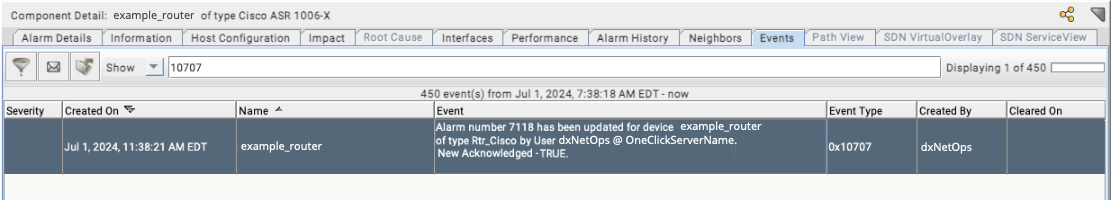 We would like to know what user acknowledged an alarm in the OneClick console. The alarm view in the console