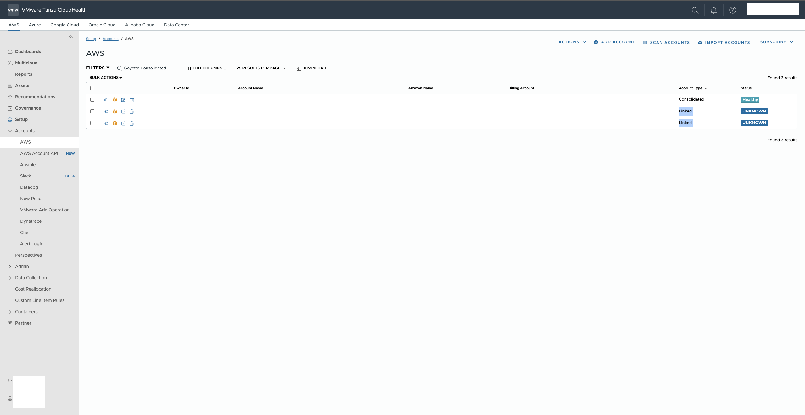 When attempting to add a custom line item to a linked account, the account dropdown likely will not show the linked account.