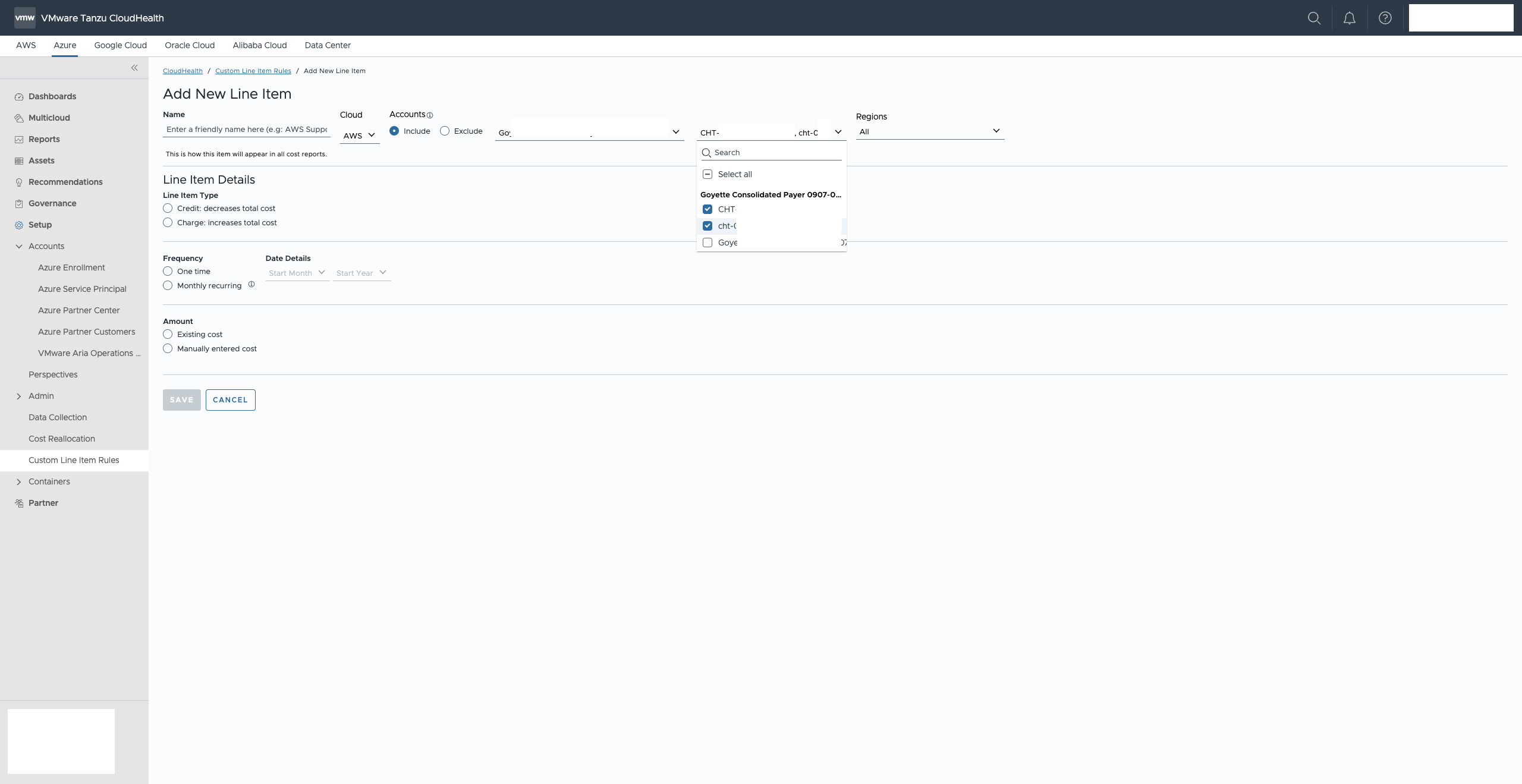 If you want to add a custom line item to a linked account then you must select that linked account's payer account in the first dropdown. From there, a second dropdown will appear where you can select the desired linked accounts: