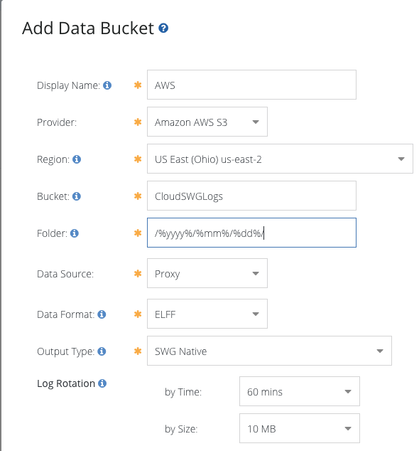 Do not use the "s3://" prefix in the "Bucket" field. For example, if the bucket name is CloudSWGlogs, the correct value is CloudSWGlogs NOT s3://CloudSWGlogs.