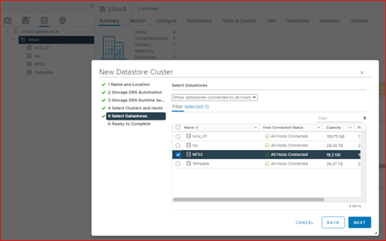 ++ It is observed when NFS4.1 is mounted on ESXi, Datastore cluster is not supported