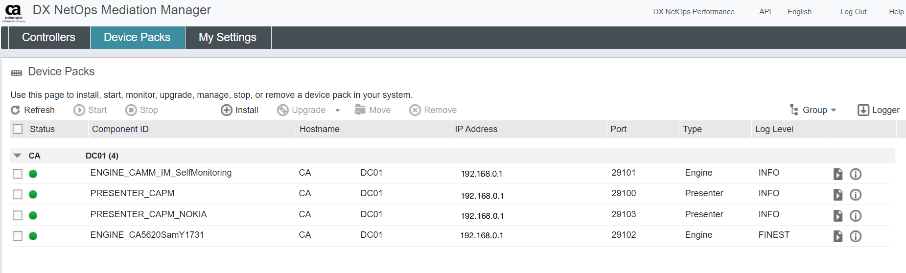 After installing a device pack, status seems to be online and working: