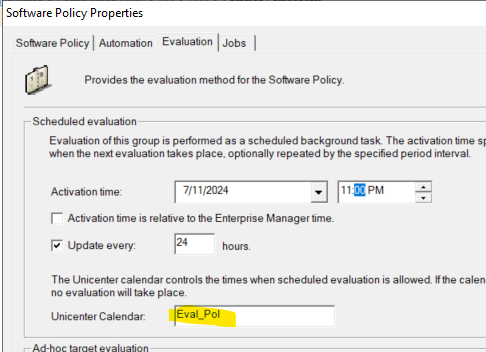 When Software Policy is evaluated by Policy Manager, the specified calendar is checked. It the date/time matches with current date/time, the Software Policy is evaluated.