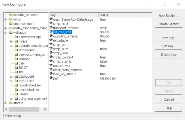 From DX UIM 23.4.2 forward there is a Raw Configure option available on the wasp probe to set any desired limit.