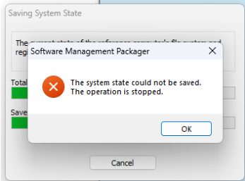 When creating a new SXP Package, following error occurs during "Saving System State" phase :