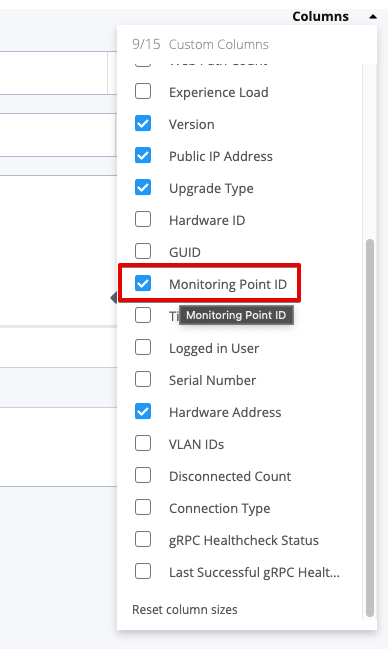 1. From Monitoring Points Page, add the Monitoring Point ID Column to view: