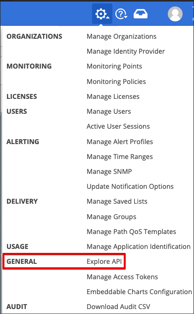 2. Once you have the Monitoring Point ID of the device you would like to delete, click the Gear on the top of the page and choose Explore API
