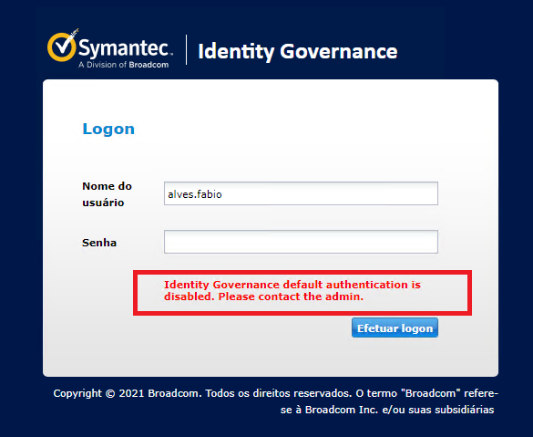 "Identity Governance default authentication is disabled. Please contact the admin"