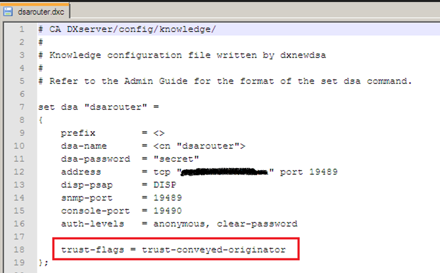 a. Edit the dxc file of the data and router under \CA\Directory\dxserver\config\knowledge by adding