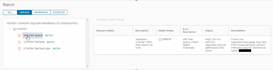 YYYY-MM-DDTHH:MM:SS.sssZ ERROR [vcf_om,#################,####] [c.v.v.b.p.t.v.SimpleNativeValidator,om-exec-23] Native validator with name 'mgmt-vm-free-space-validator' failed internally