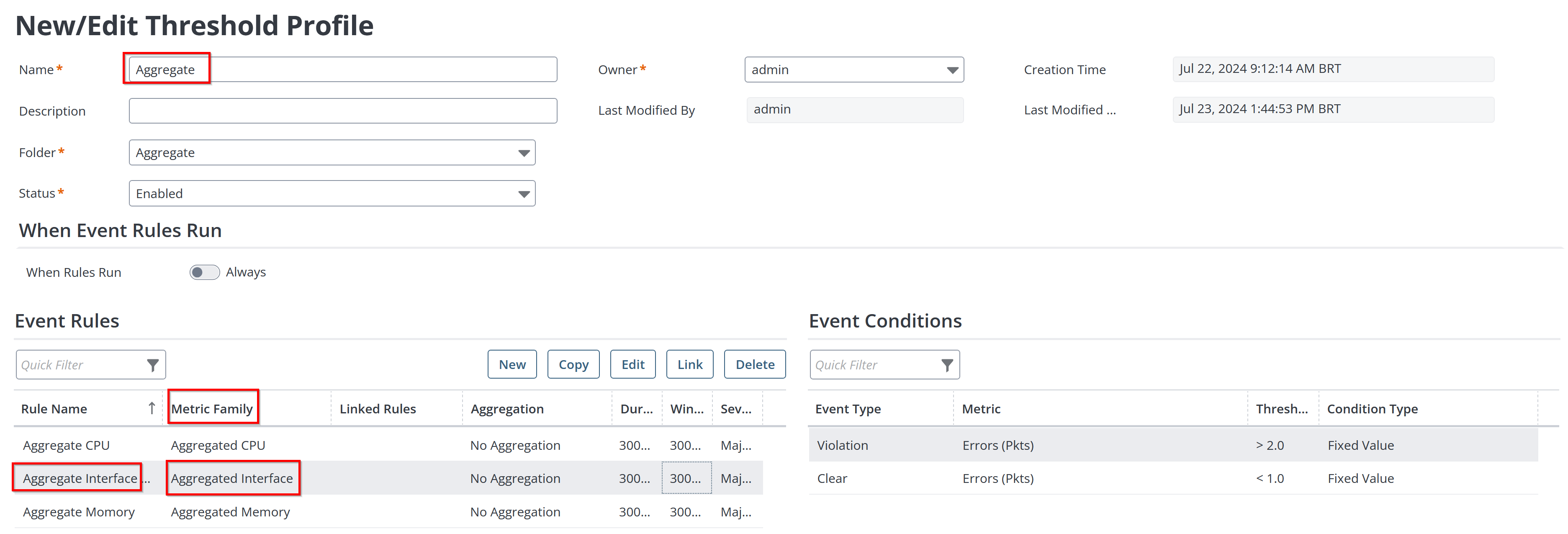 In Performance Management needs to create an aggregated alarm only for 4 or 5 interface from multiple devices