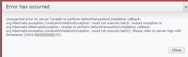[https-jsse-nio-8443-exec-25] ERROR (org.hibernate.engine.jdbc.batch.internal.BatchingBatch:134)