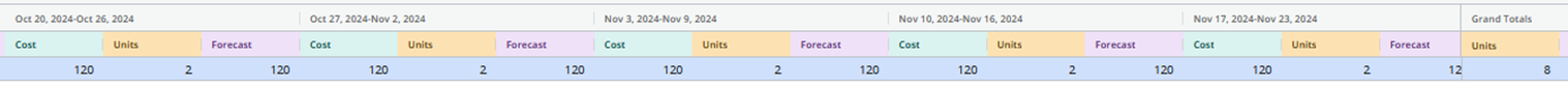If your plan is created monthly, and however your view options are set to weekly, you may see additional values for a week where there are no ETCs.
