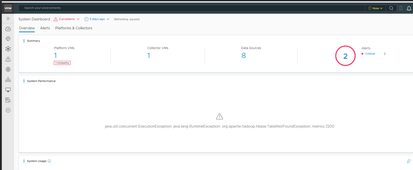 This issue can occurs due to environment issue where the hbase tables are not enabled or it was accidentally removed.