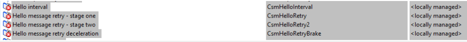 - Hello message retry deceleration: 900